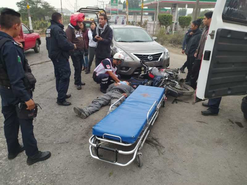 Córdoba, Ver.- Un motociclista resultó con golpes en varias partes del cuerpo luego que se estrellara contra un automóvil en la carretera Córdoba-Amatlán, a la altura de la gasolinera de San Miguelito.