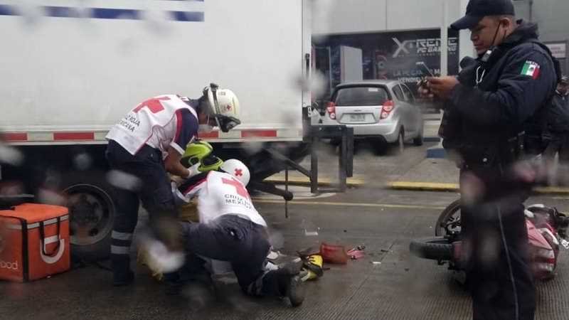 Córdoba, Ver.- Herido sobre el asfalto terminó un motociclista que se estrelló contra una camioneta de Paquete Express cuando ambos circulaban sobre la avenida 11, entre calles 22 y 24 en la colonia San José.