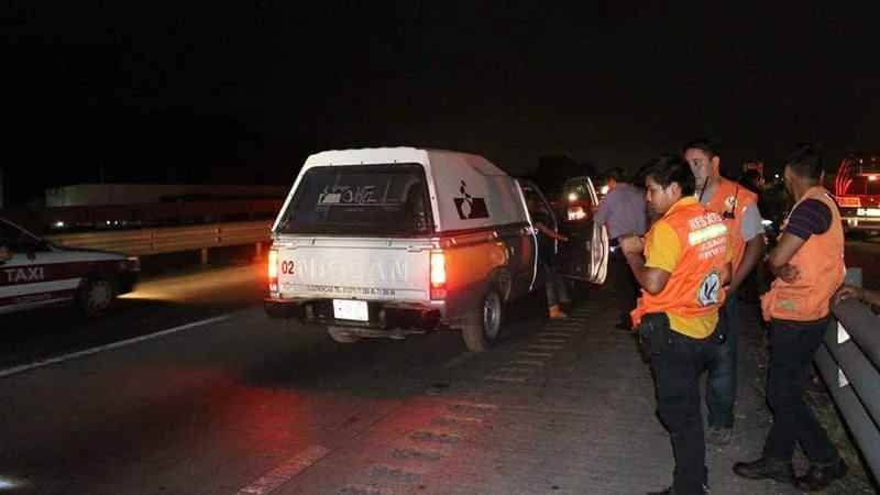 Córdoba, Ver.- Una pareja que intentó cruzar la autopista Córdoba-Orizaba fue arrollada a la altura de La Quebradora muriendo en el acto el hombre quien en vida respondió al nombre de Oswaldo Carrión mientras la mujer, que se encuentra embarazada sufrió golpes contusos y fue trasladada a un hospital para atenderla de cualquier complicación.