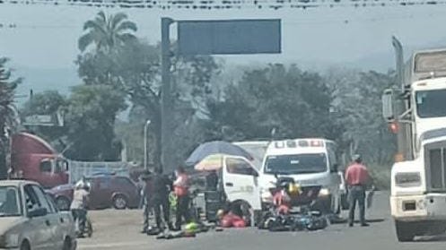 Muere mujer al caer de motocicleta; su esposo queda grave