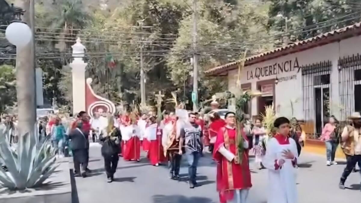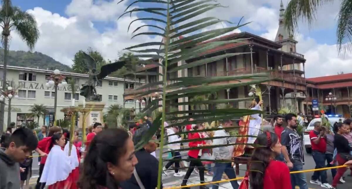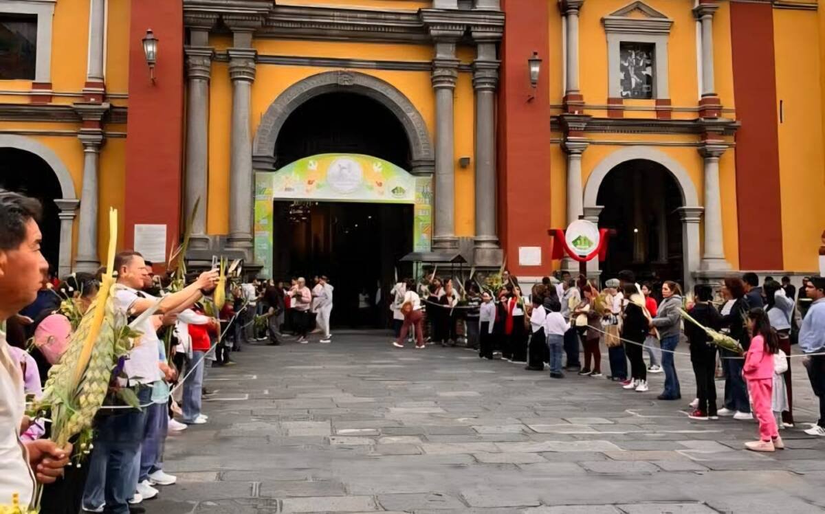 Durante el recorrido, así como a su arribo al templo, seminaristas realizaron la bendición de los ramos con agua bendita, mientras al interior del recinto ya se encontraba un importante número de fieles en espera de la misa solemne.