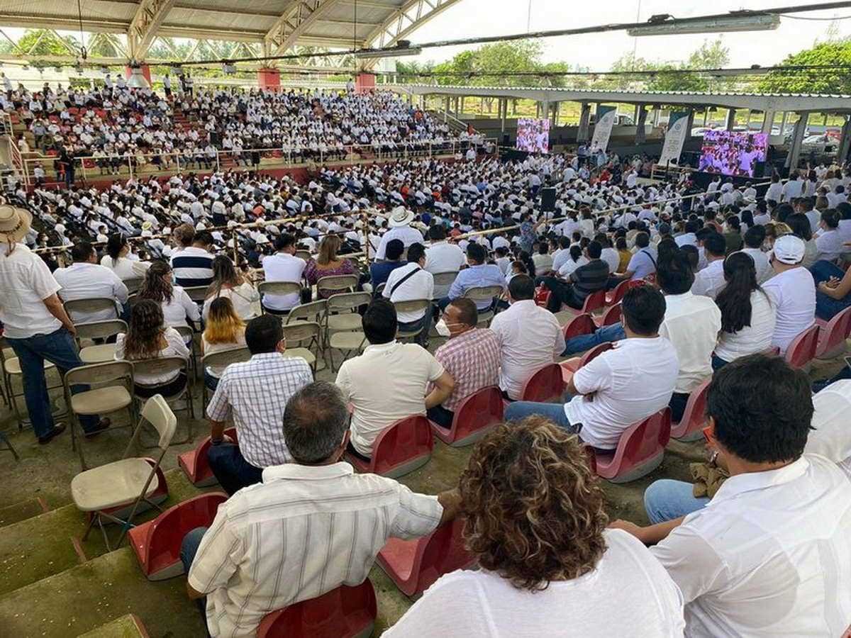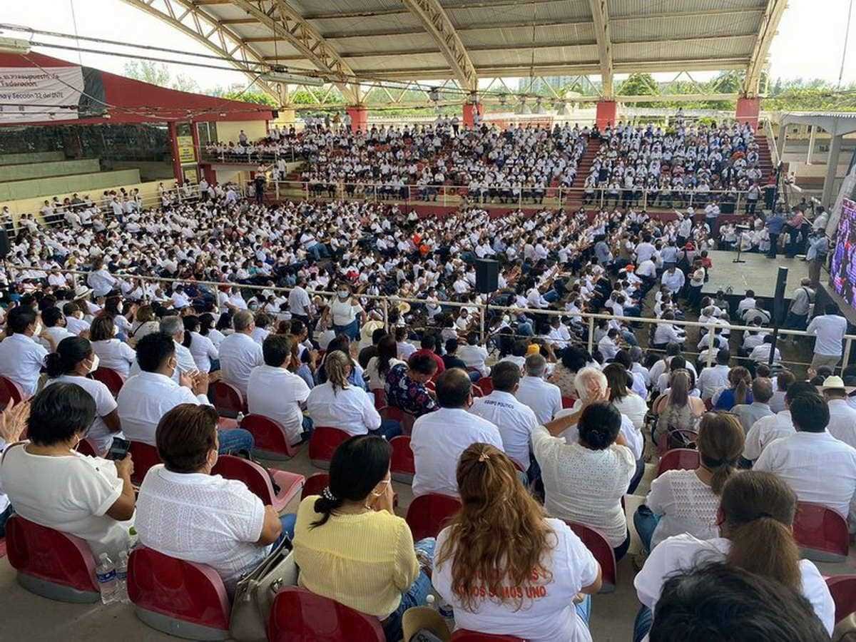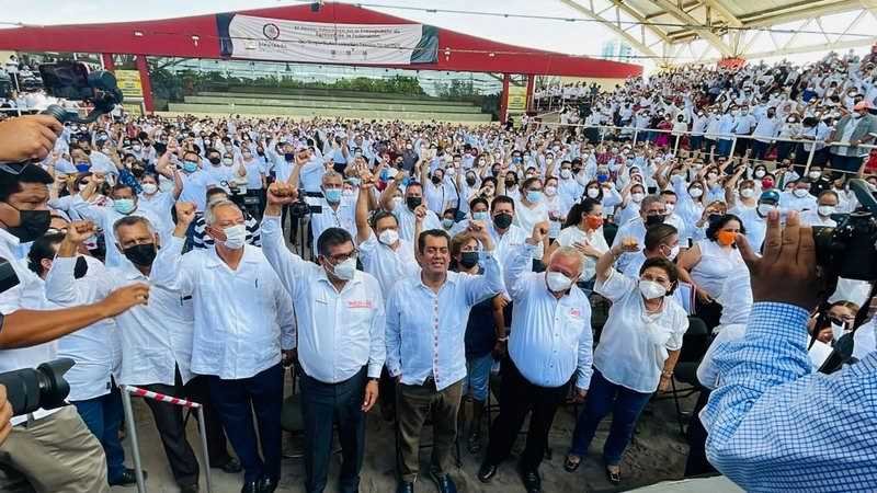 El diputado federal Sergio Gutiérrez Luna, Presidente de la Cámara de Diputados del Congreso de la Unión, se reunió con más de 2 mil 500 maestros veracruzanos de la sección 32 del SNTE, a quienes informó de los recursos etiquetados en el Presupuesto de Egresos de la