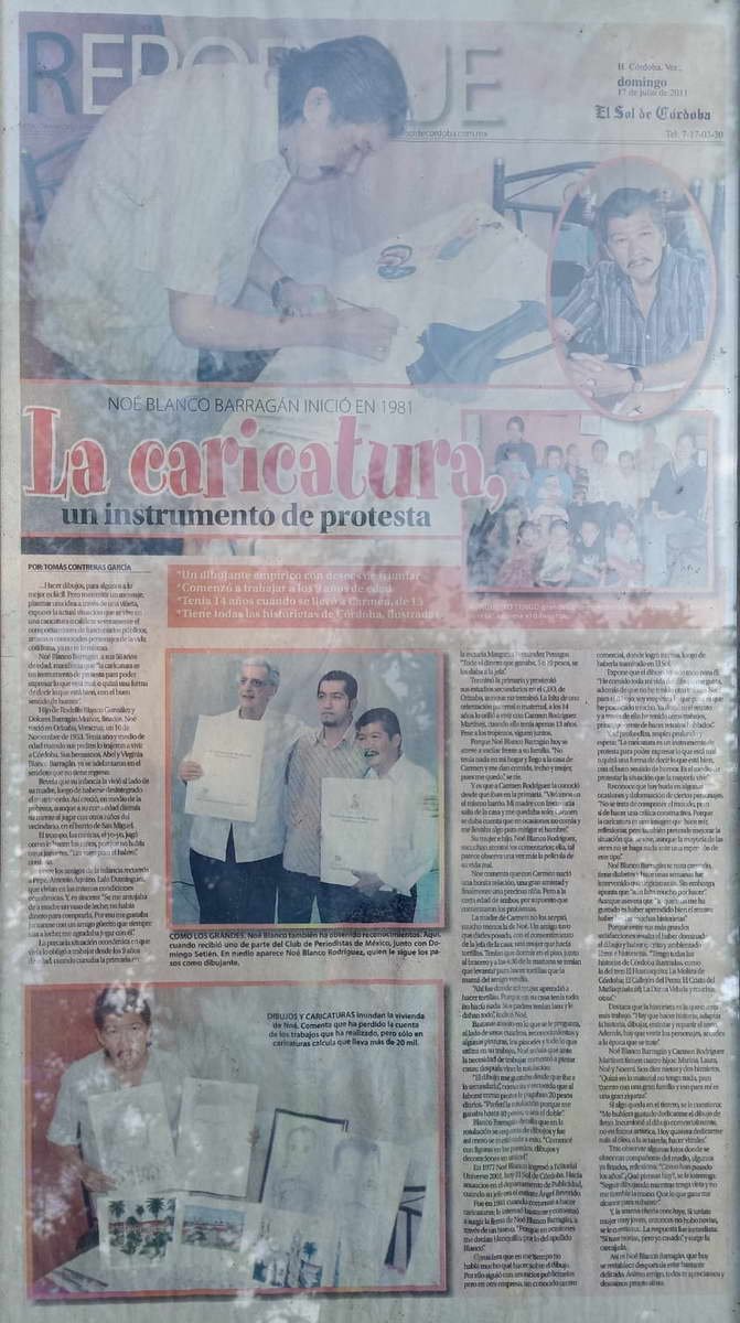 Córdoba, Ver.- Para ser monero, cartonista o caricaturista periodístico es necesario ser creativo, mordaz, crítico y comunicador a través de las líneas, bocetos y dibujos. Es un oficio casi en extinción. A esta raza pertenece Noe Blanco Barragán quien desde joven plasmó con lápiz el mundo político, empresarial y social de nuestro estado pero en especial de Córdoba.