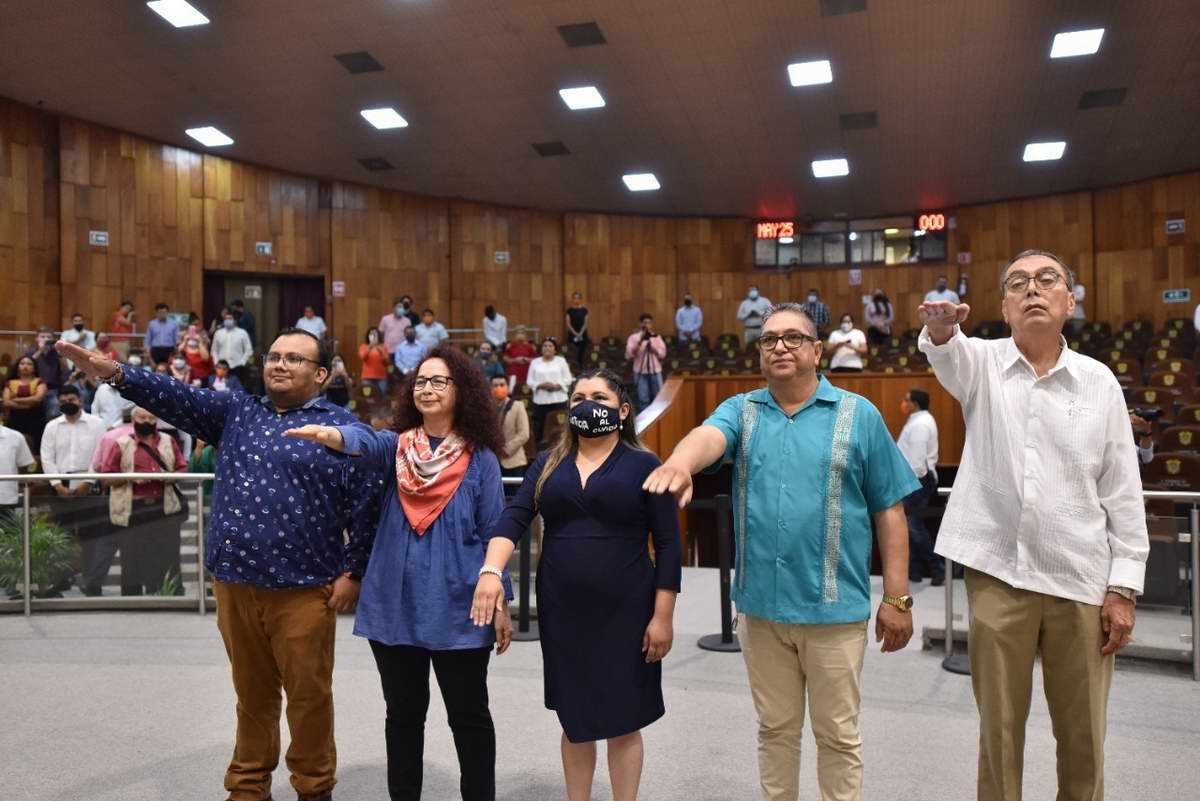 Posterior a la aprobación del dictamen, la presidenta de la Mesa Directiva, diputada Cecilia Guevara, designó a la Comisión de Cortesía, integrada por las diputadas Margarita Corro Mendoza, Nora Jéssica Lagunes Jáuregui, Anilú Ingram Vallines y Maribel Ramírez Topete, así como por los diputados Paul Martínez Marie, Genaro Ibáñez Martínez y Juan Enrique Santos Mendoza, para recibir y conducir al Recinto Oficial de Sesiones a cinco de las seis personas, para la toma de protesta de ley.