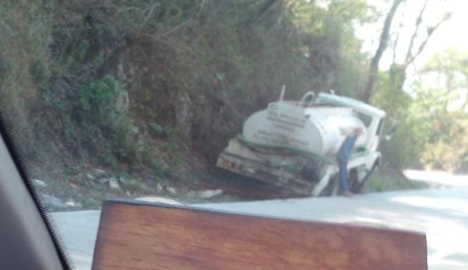 El incidente involucró una pipa del Ayuntamiento de Ixtaczoquitlán, la cual terminó fuera de la carretera tras un supuesto choque con un vehículo no identificado. El conductor declaró que otra unidad se le cerró abruptamente obligándolo a realizar una maniobra evasiva que lo llevó a salirse del camino.