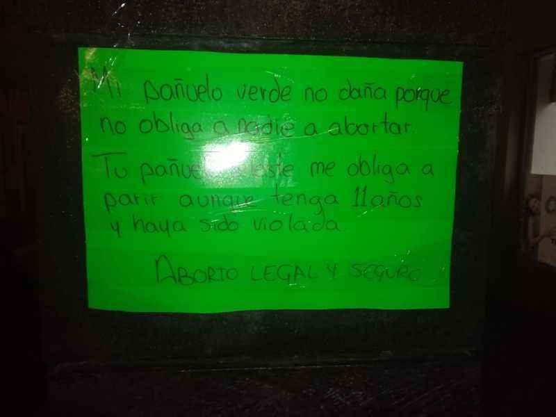 Fue minutos antes de las 04:30 horas, que las feministas, iniciaron la colocación de mensajes en cartulinasy pañuelos a favor de la interrupción legal del embarazo en diversos puntos estratégicos, a fin de visibilizar este tema.