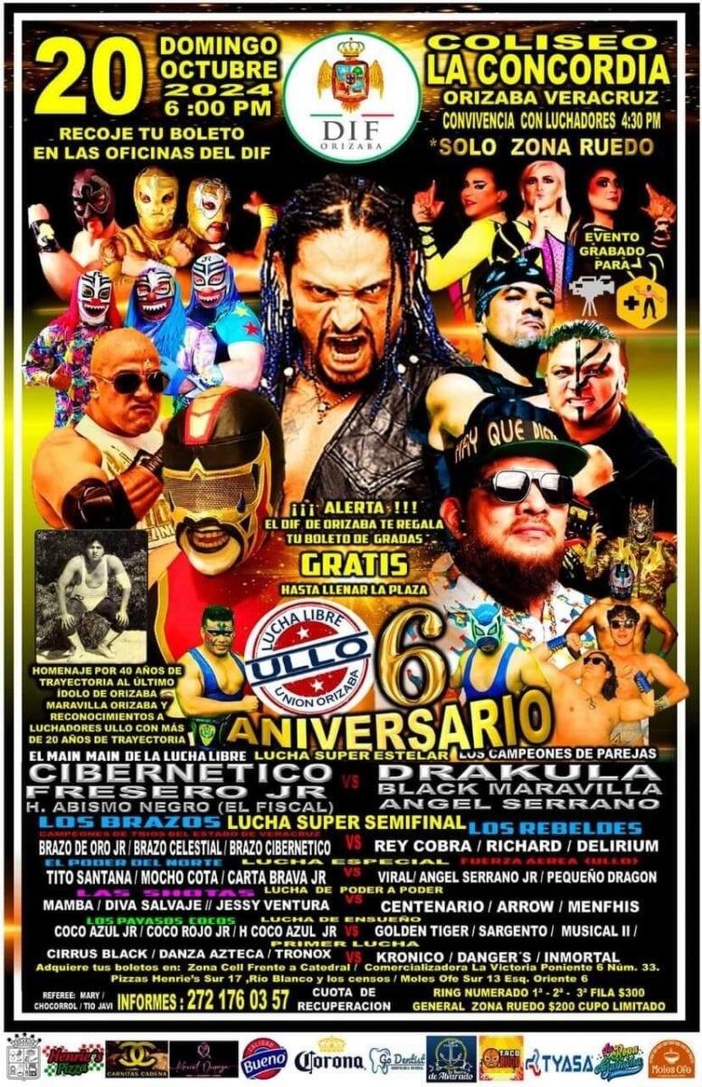 Orizaba, Ver.- Al menos 6 mil personas de Orizaba y la región podrán asistir gratis a la función de lucha libre que se ofrecerá el próximo 20 de octubre en el marco del sexto aniversario de promotora Unión de Lucha Libre Orizaba (ULLO), para lo cual el DIF de Orizaba será el encargado de otorgar los accesos.