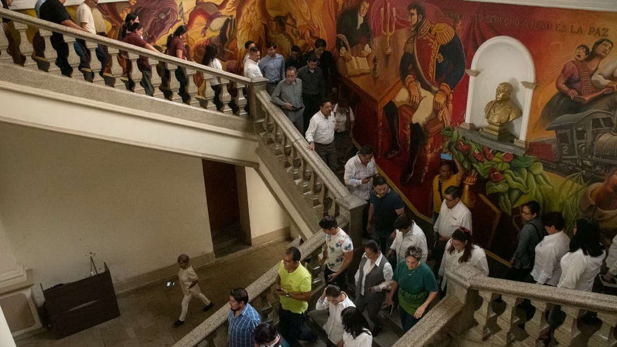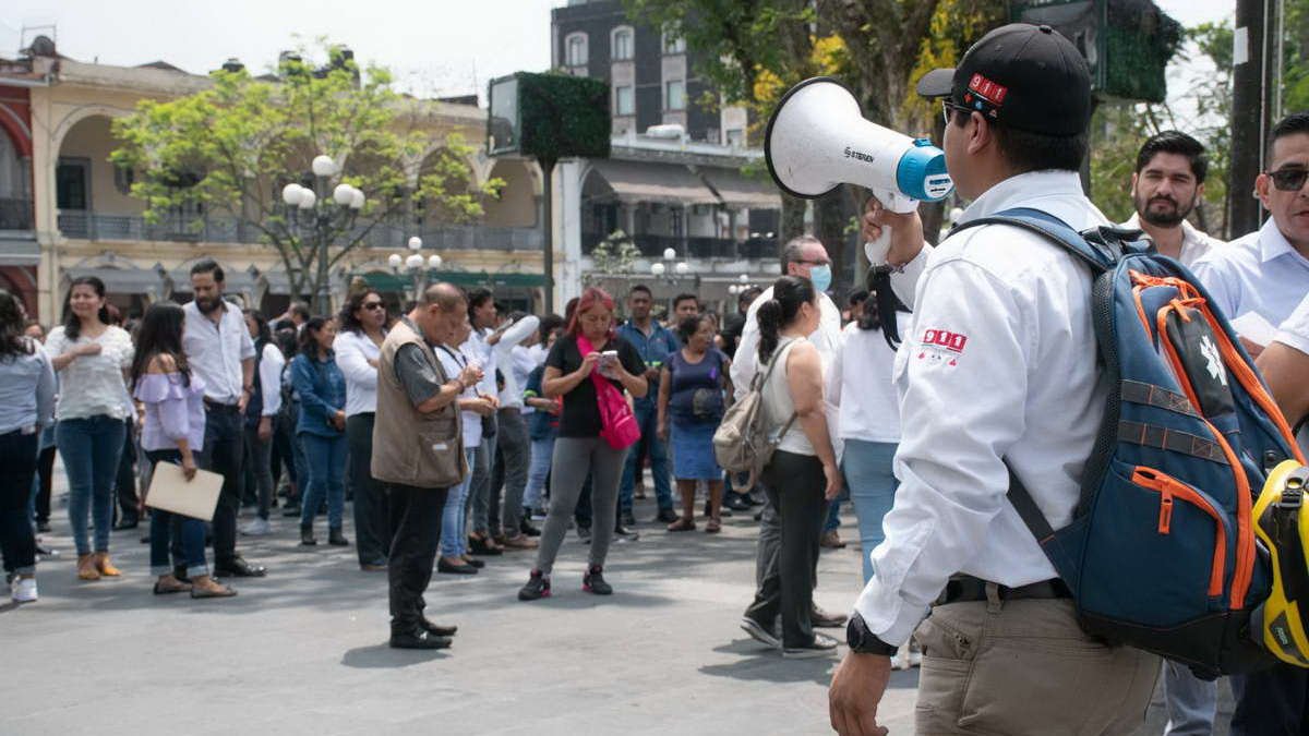 El director de Protección Ciudadana y Movilidad, Enrique Morales Tolentino, explico que con una duración de 3 minutos se logró la evacuación total del inmueble municipal, así como de restaurantes que se sumaron y de escuelas, luego de la hipótesis de sismo de 7.5 grados Richter.