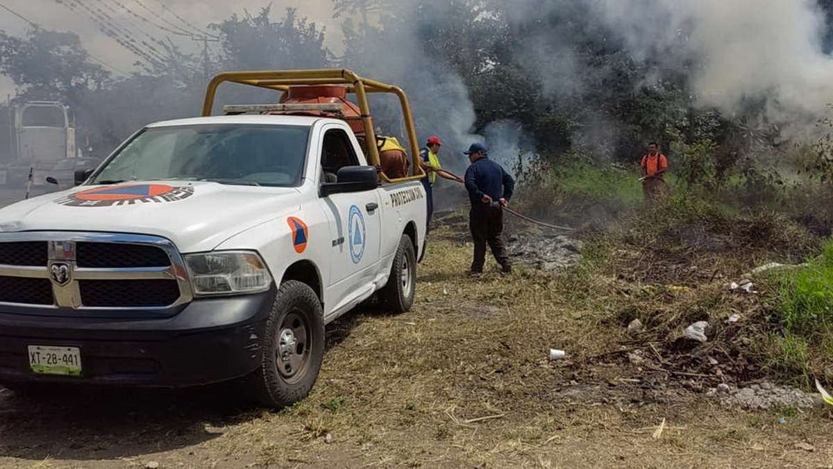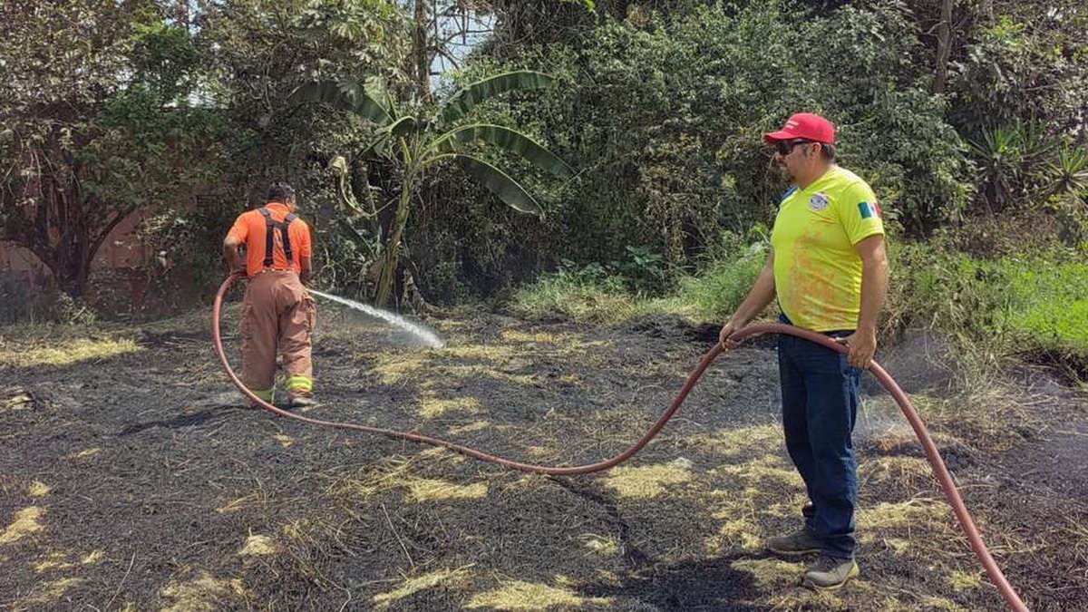 PC de Atoyac sofoca incendio de pastizal en baldío de Potrero Nuevo