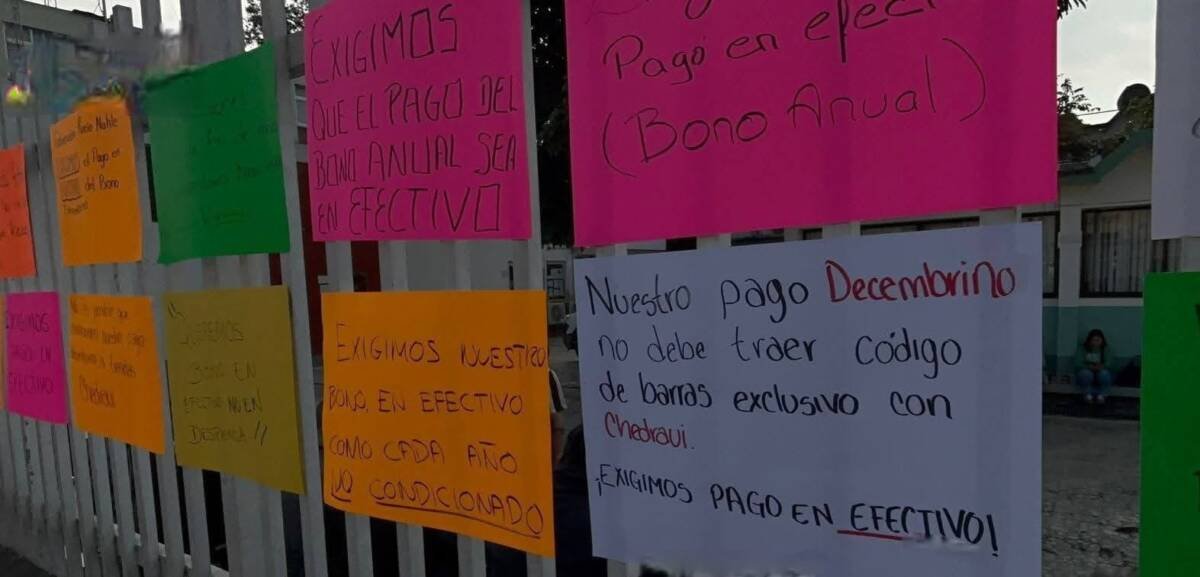 “Parece que estamos regresando a los tiempos de raya, cuando a los trabajadores se les pagaba con vales que sólo podían cambiarse en un solo lugar, y eso no es justo”, expresó uno de los manifestantes, quien prefirió mantener su nombre en reserva. El argumento central es que el bono, cuyo monto ronda los 12 mil pesos y varía según el área, es una prestación económica que forma parte de su ingreso y debe entregarse en efectivo para disponer de él libremente según las necesidades familiares.