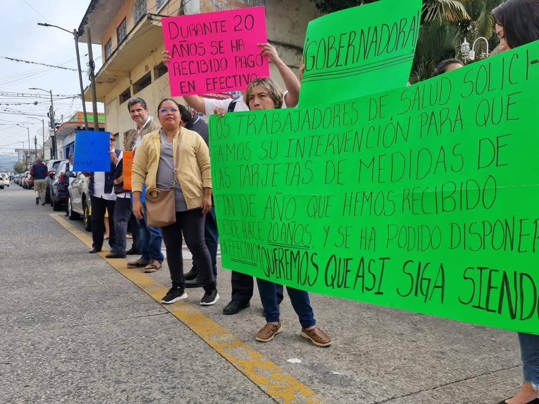 Orizaba, Ver.- Un total de 620 trabajadores de la Jurisdicción Sanitaria Número 7 se manifestaron este martes en las instalaciones de esta dependencia, sumándose a las protestas simultáneas que realizan miles de empleados del sector salud en todo el estado de Veracruz. La movilización tiene como objetivo rechazar la decisión de las autoridades de pagar un bono mediante una tarjeta de despensa de uso restringido, en lugar de hacerlo en efectivo como era la práctica establecida.
