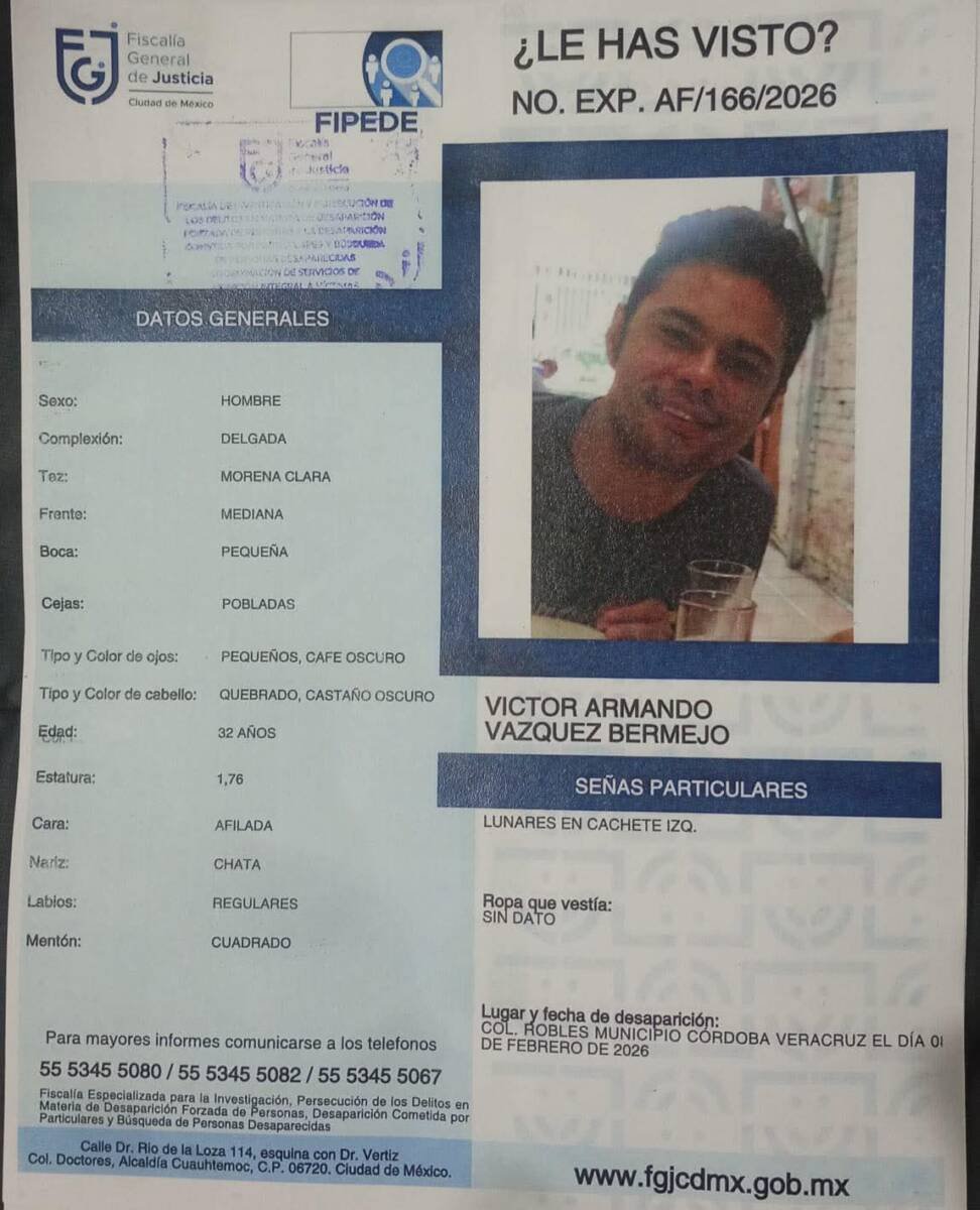 Córdoba, Ver.- De acuerdo con la información proporcionada por personas cercanas, desde ese día no se ha logrado establecer comunicación directa con Víctor, situación que ha generado preocupación debido a diversas incongruencias en los datos recibidos posteriormente sobre su paradero.