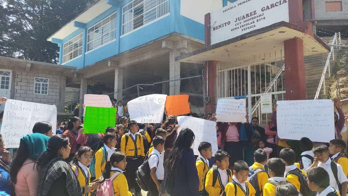 Tehuipango, Ver.- En demanda de la designación de dos docentes, padres de familia de la escuela primaria Benito Juárez García de la comunidad de Tepeica del municipio de Tehuipango, tomaron el plantel, este lunes.