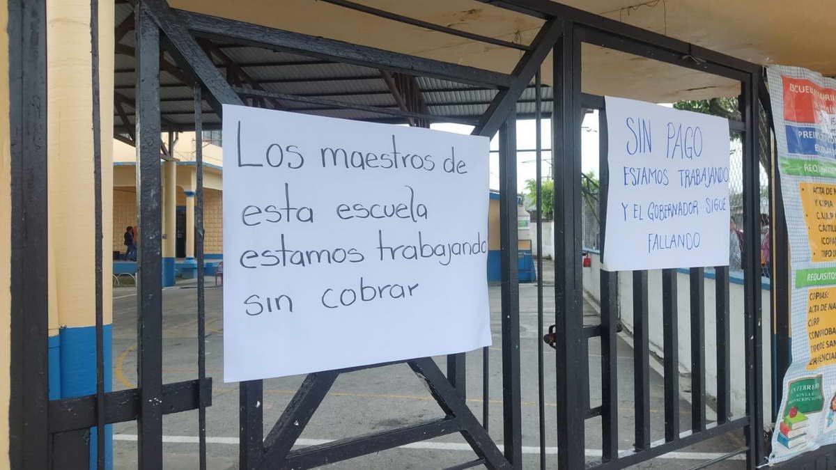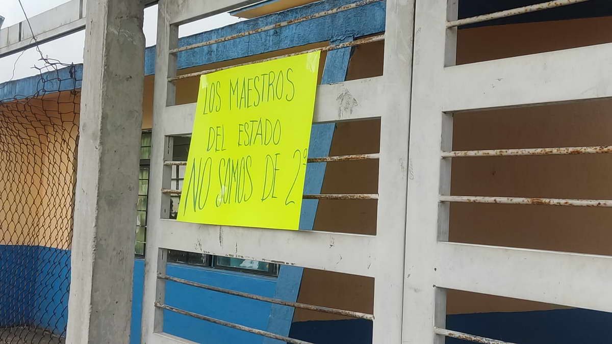Orizaba, Ver.- Debido a la falta de pago de la segunda quincena a maestros por parte del Estado, integrantes de diversos sindicatos magisteriales no se presentaron a laborar este miércoles en algunos planteles de la región, mientras que en otros únicamente colocaron cartulinas informando que están trabajando bajo protesta.
