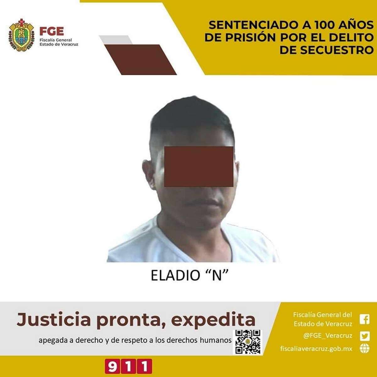 Orizaba, Ver.- La Unidad Especializada en Combate al Secuestro logró sentencia condenatoria de 100 años de prisión en contra de Eladio “N” por el delito de secuestro.