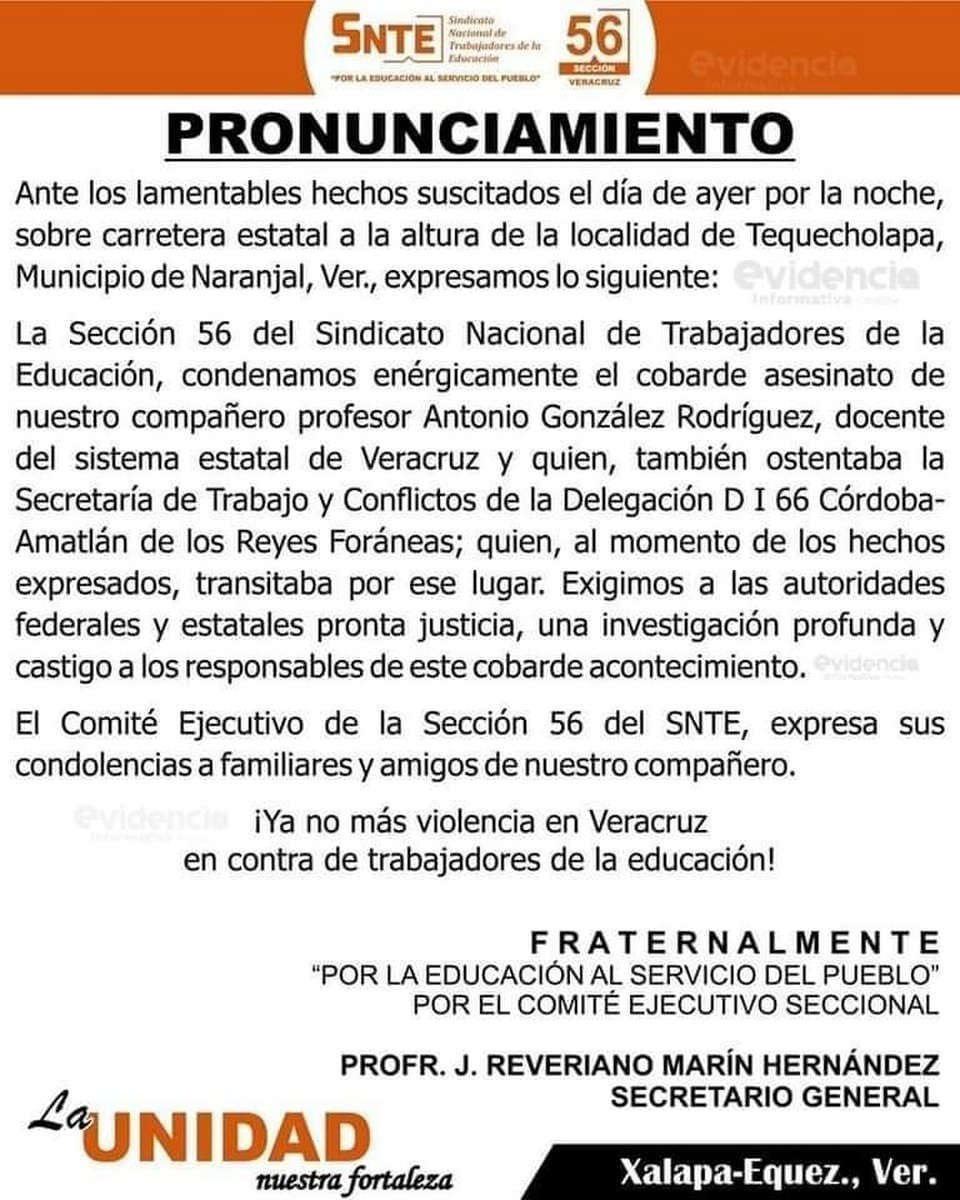 Las víctimas fueron el profesor Antonio González Rodríguez, de 33 años de edad, de la escuela primaria de El Otate, Amatlán, y la estudiante de pedagogía Lucero Porras Hernández, de 22 años, los cuales al viajar en motocicleta fueron asesinados a balazos por supuestos policías ministeriales que desataron una persecución después de que se negaron a una revisión en la carretera Naranjal-Coetzala, a la altura de Tequecholapa.