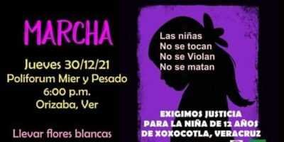 Marcharán este jueves para exigir justicia en el asesinato de la hija del alcalde de Xoxocotla Orizaba, Ver.- Para exigir a las autoridades se haga justicia en el asesinato de la menor de ... Manuela V. Carmona29 de diciembre del 2021 Principal