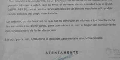 Pepsi tiene exclusividad en secundarias: SEV Orizaba, Ver.- A través de un oficio la Subdirección de Escuelas Secundarias Generales de la SEV informó ... Redacción7 de noviembre del 2019 Principal