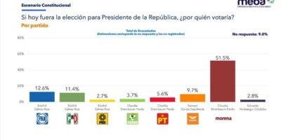 3 Sheinbaum contundente en carrera por la presidencia refleja estudio de Meba -La ex-Jefa de Gobierno de la CDMX obtiene una ventaja del +34% en su intención de voto ... Redacción16 de octubre del 2023 Nacional
