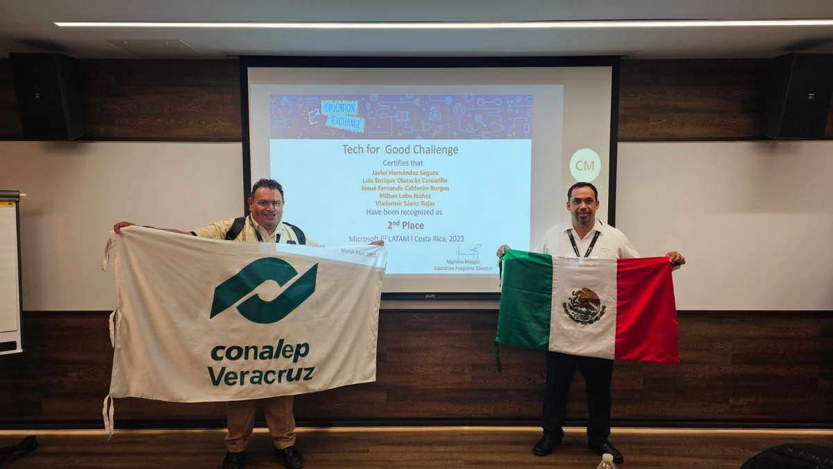 Conalep Veracruz reconoce la participación de sus docentes Enrique Olazarán Camarillo, del plantel 244 Manuel Maples Arce y Víctor Manuel de Jesús Leyva Negrete del plantel Veracruz II, quienes formaron del LATAM E2 Tech for Good Costa Rica 2023, un evento mundial, organizado anualmente por Microsoft y la Fundación WE.