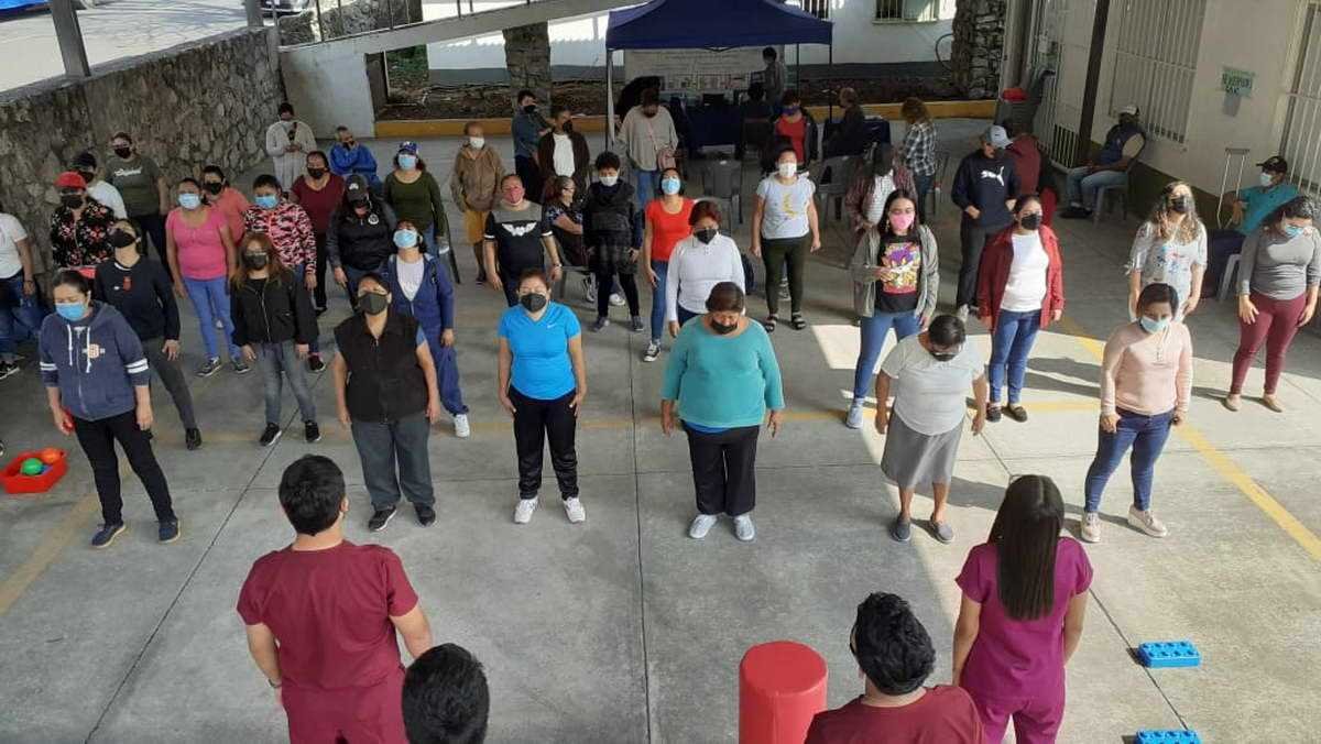 Reunidos en la explanada del Club del Abuelo, fisioterapeutas apoyaron a los participantes con el desarrollo de ejercicios para mejorar la circulación sanguínea en el cuerpo, además de ofrecer toma de presión arterial, de glucosa, saturación de oxígeno a un costo mínimo.