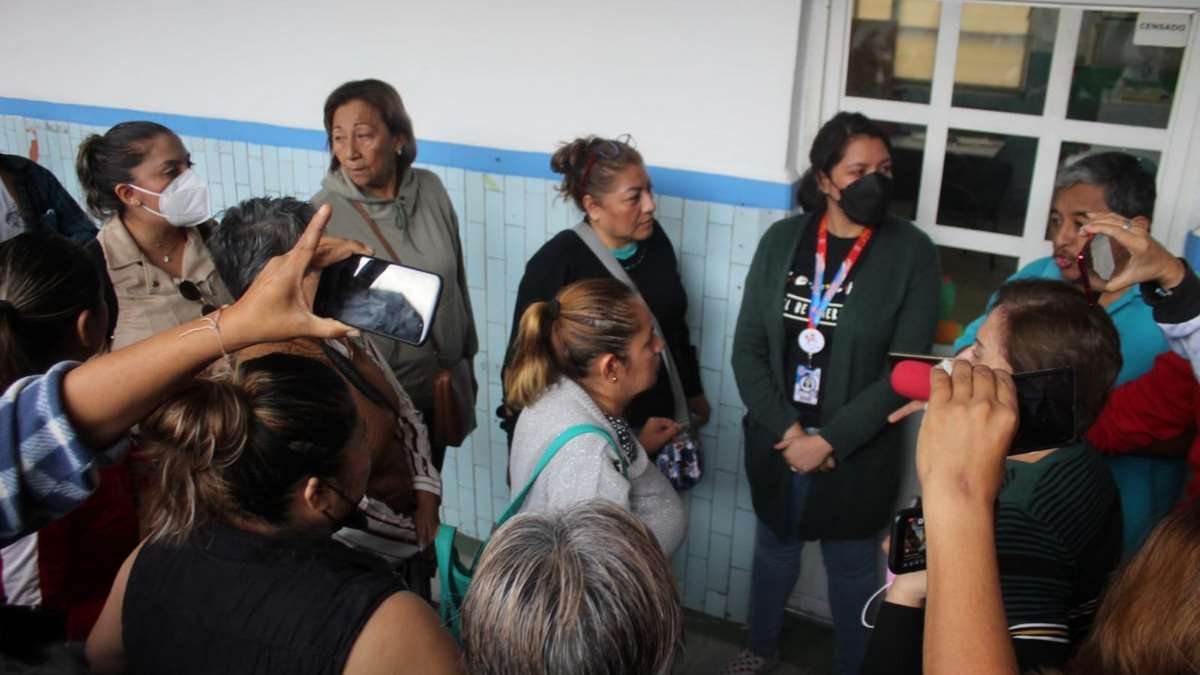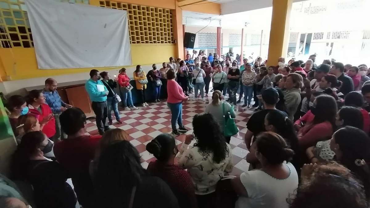 La protesta de madres de familia se realiza desde temprana hora exigiendo castigo al conserje denunciado quien al parecer ya se dio a la fuga pues no se presentó a laborar.