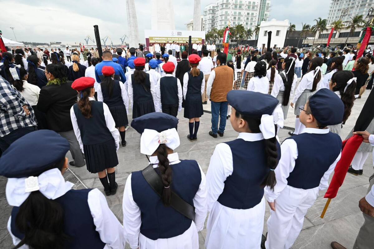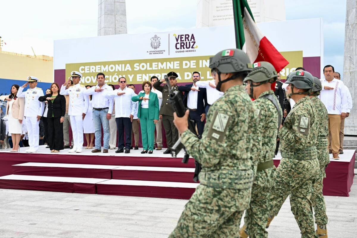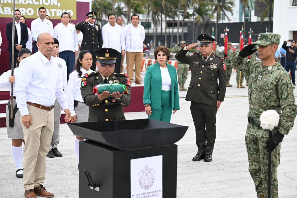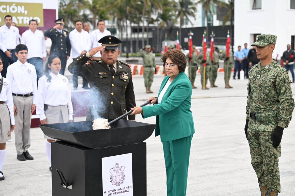“En el México de la transformación, las y los veracruzanos reconocemos la importancia de valorar, respetar y proteger nuestra identidad para edificar patria día con día”, manifestó la alcaldesa, Rosa María Hernández Espejo, al encabezar la ceremonia solemne de incineración, cambio y entrega de banderas a escoltas en la Plaza del Heroísmo Veracruzano.