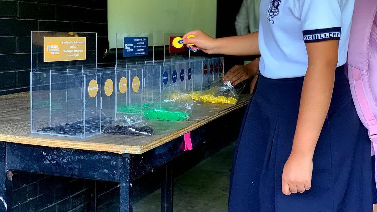 Dentro de la dinámica de las sesiones, se generó una consulta mediante “urnas de votación”, invitando a los estudiantes a contestar una serie de preguntas relacionadas con temas sostenibles: educación, pobreza, medio ambiente, igualdad de género, cultura e inclusión social, con el objetivo de conocer las acciones y actitudes en su vida diaria, así como generar información que permita la toma de decisiones.