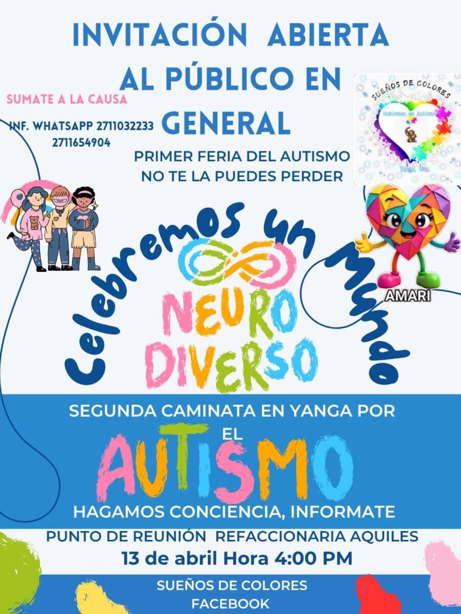 La invitación está abierta a toda la población para sumarse a esta actividad que se desarrollará en el municipio de Yanga, en donde se espera la participación de familias y ciudadanos interesados en apoyar las iniciativas que impulsan la conciencia social sobre el autismo.