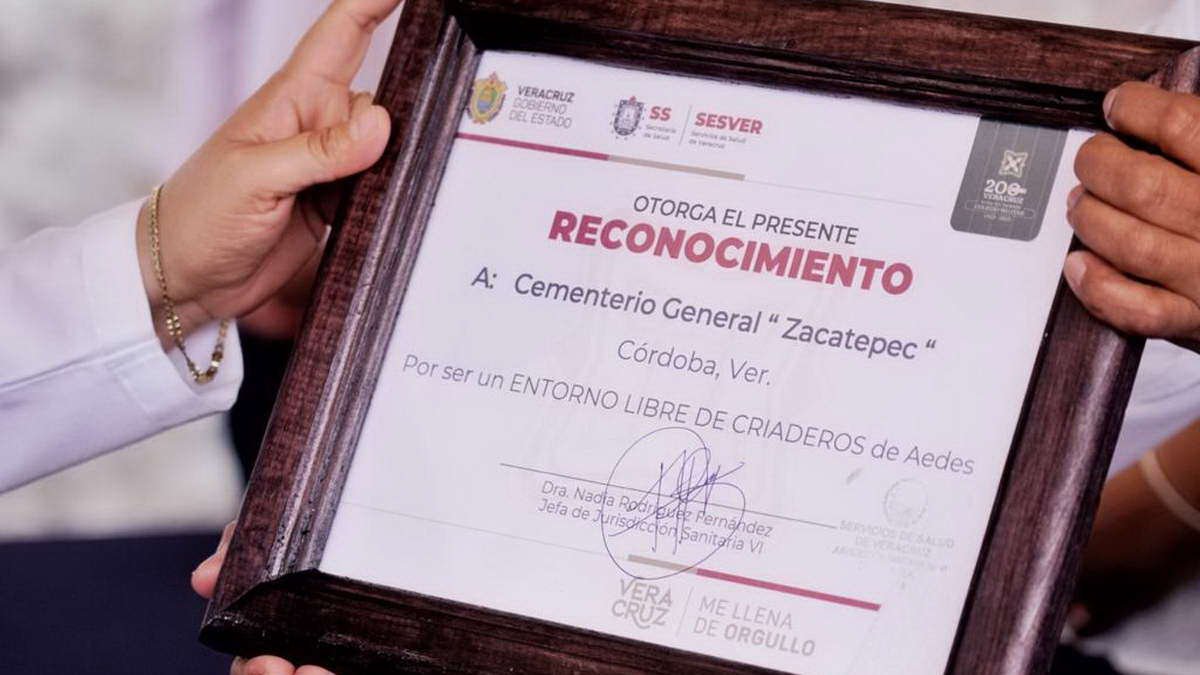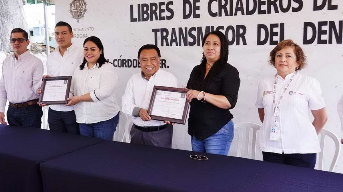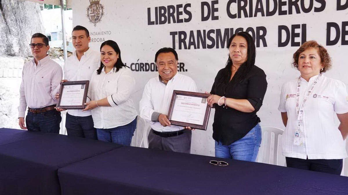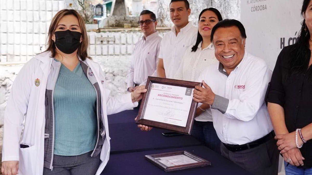 Córdoba, Ver.- Para dar cumplimiento a los objetivos de la Agenda 2030, este martes la jefa de la Jurisdicción Sanitaria 6, Nadia Rodríguez, entregó la recertificación del Panteón Municipal y Zacatepec como espacios Libres de Criaderos del Mosco Transmisor del Dengue al presidente municipal, Juan Martínez Flores.