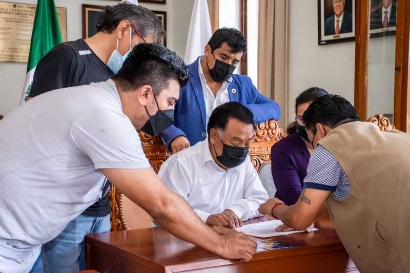 En representación de los 224 afectados por el incendio del 31 de enero de 2020, acudieron Mario Antonio Martínez Estrada, presidente del comité de obra; Miguel Ángel Rosas, vocal, así como Julio César Reynoso García y Elías Castro Palacios, quienes mostraron al Alcalde y a la regidora tercera, Georgina Aguilar Sánchez, presidenta de la comisión de Obras Públicas, fotografías de la zona que quedó inconclusa, además expresaron sus inquietudes, manifestando que están en disposición de colaborar para que se solucione todo a la brevedad.