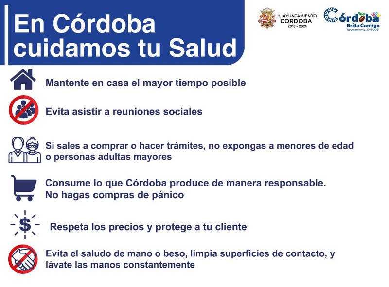 Córdoba, Ver.- El Ayuntamiento de Córdoba, en coordinación con la autoridad de salud, determinó reforzar acciones preventivas en el marco de la Jornada Nacional de Sana Distancia a fin de procurar la salud de las familias cordobesas ante el COVID – 19.