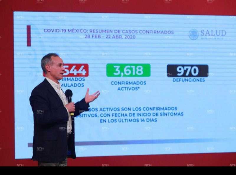 México, 22 Abr (Notimex).- Son 10 mil 544 los casos confirmados que suma el país desde el inicio de la epidemia, de los cuales hay tres mil 618 activos. Asimismo, hasta este miércoles se han registrado 970 defunciones, informaron autoridades de Salud.