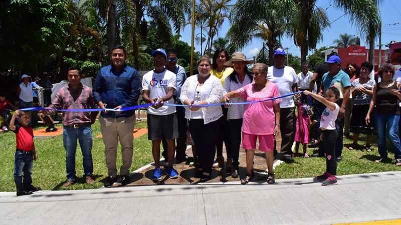 Córdoba, Ver, 17/07/18.- Más de 530 familias disfrutarán a partir de ahora de un espacio digno para la recreación y convivencia sana, además de que caminarán por un espacio seguro con la rehabilitación del parque y banquetas en la Unidad Habitacional Rincón del Bosque, obras que fueron inauguradas este martes por la presidenta Leticia López Landero.