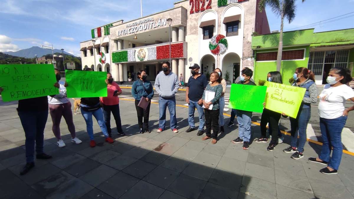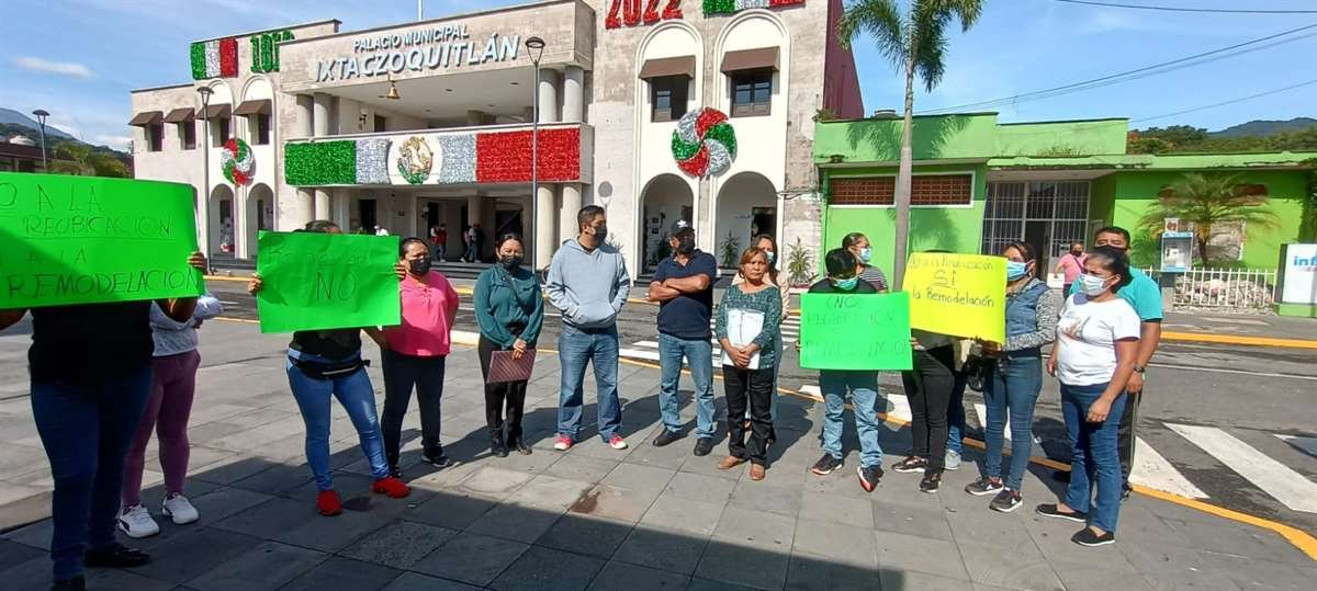 Ixtaczoquitlán, Ver.- Ante el riesgo de perder las instalaciones en donde se encuentra ubicada la escuela primaria Benito Juárez de la colonia Centro del municipio de Ixtaczoquitlán, padres de familia se manifestaron esta mañana en el Palacio Municipal, para intentar dialogar con el alcalde Nahúm Álvarez Pellico.