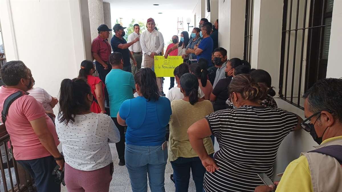 Los regidores fueron citados anoche para una sesión de cabildo cerrada, en dónde se discutirá este punto, por lo que los manifestantes se presentaron en el Palacio para exigir sean atendidos por el alcalde.