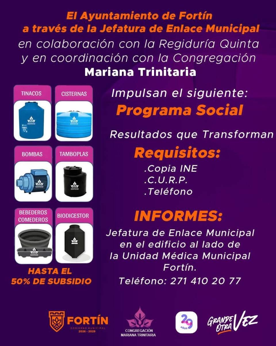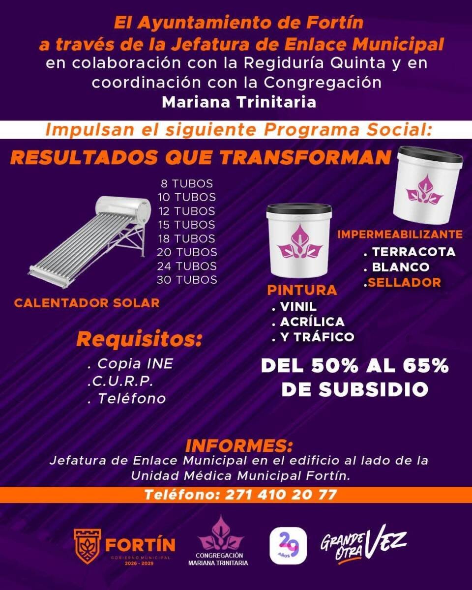 Para acercar los beneficios sociales en cada rincón del municipio, el Ayuntamiento de Fortín que encabeza el presidente Alfonso Efraín “Piccolo” Marín Delfín, a través de la Jefatura de Enlace Municipal, en coordinación con la Regiduría Quinta y la congregación “Mariana Trinitaria”, llevará el programa social “Resultados que Transforman” a diversas colonias y localidades.