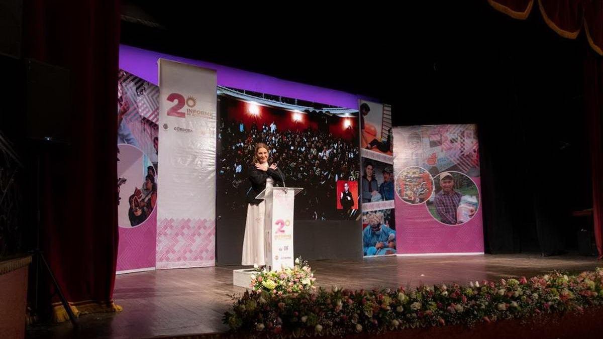 Córdoba, Ver.,(20 de diciembre del 2023).- Como parte del compromiso social que el Sistema Municipal DIF tiene con los habitantes de Córdoba, esta tarde la directora del organismo María Elena Yunes Choperena, rindió su segundo Informe de Labores en el teatro Pedro Díaz, en donde destacó esta labor integral en apoyo de las familias más vulnerables, a fin de reconstruir el tejido social en todos sus aspectos.
