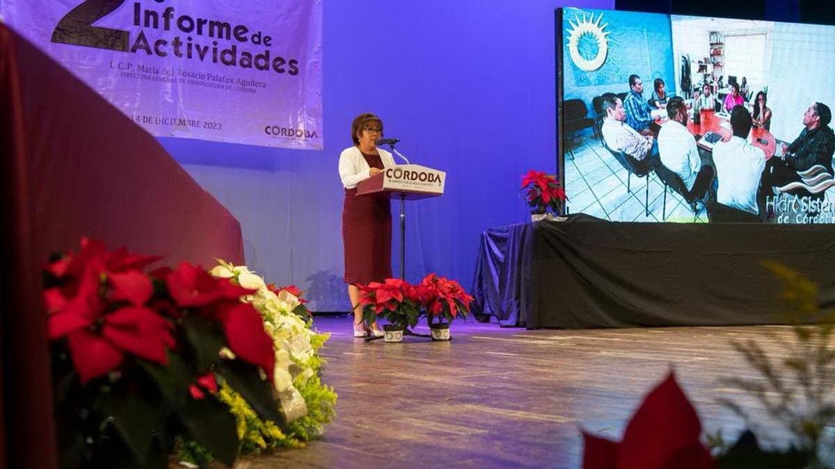 Córdoba, Ver., (14 de diciembre de 2023). – Este día, la Directora de Hidrosistema de Córdoba, María del Rosario Palafox Aguilera, rindió su segundo Informe de actividades y destacó un aumento del 17 por ciento de la recaudación con respecto al año anterior, además de tener finanzas sanas, que se traduce en mayor inversión para la infraestructura hídrica.