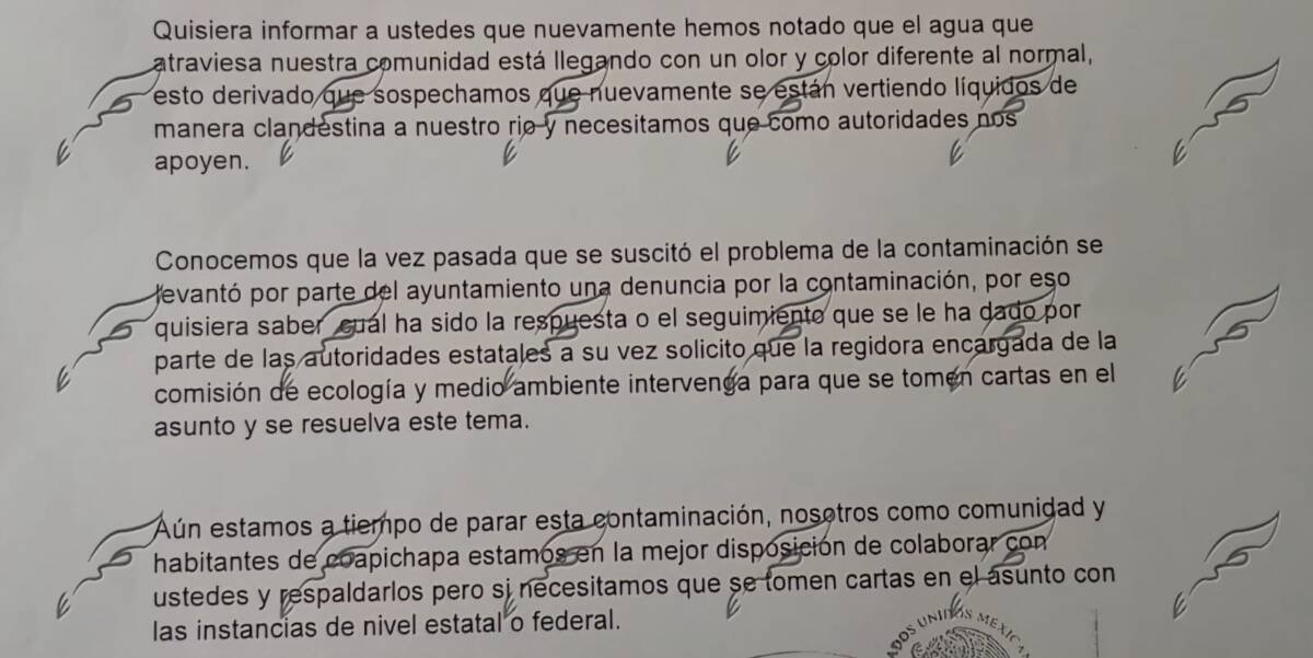 El 1 de febrero de 2026, la representación legal del Ejido Cuapichapa presentó una Denuncia Popular por Contaminación en Área Natural Protegida por desechos químicos, dirigida al procurador estatal ambiental.