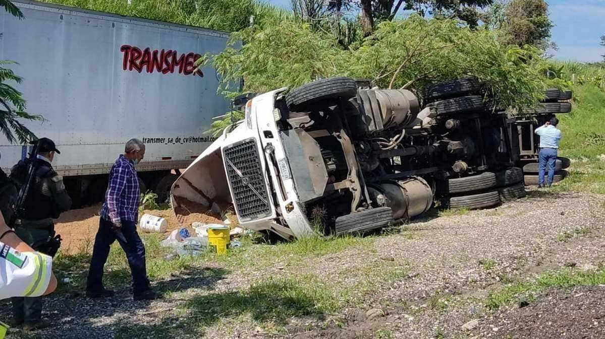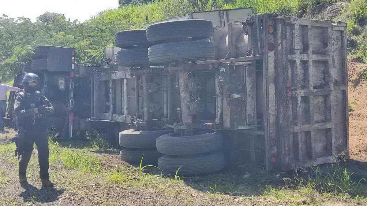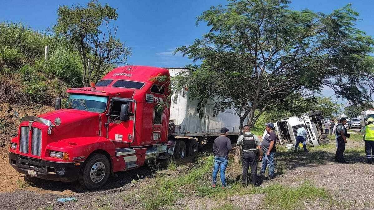El primer accidente ocurrió cuando un trailer circulaba a exceso de velocidad por lo que el chofer perdió el control de la unidad y salió de la carretera volcando de forma aparatosa.