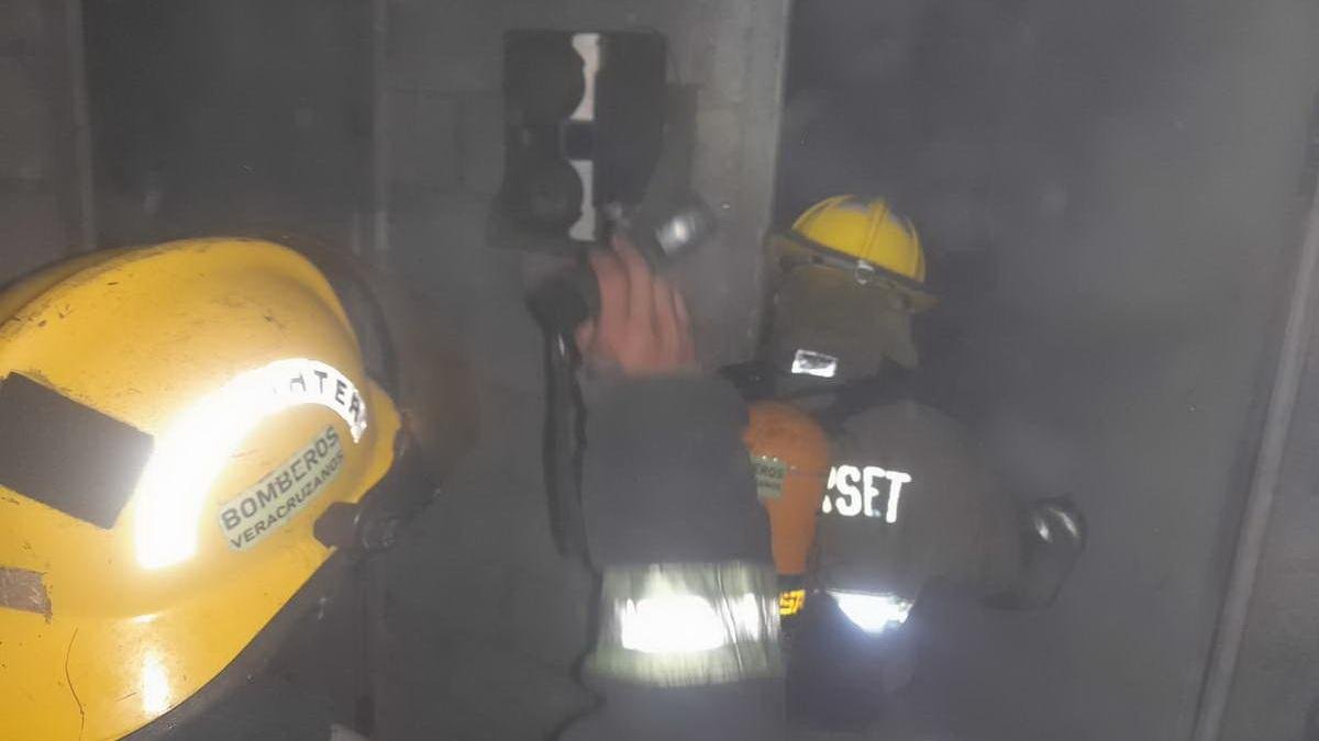 A la llegada de los Bomberos Voluntarios Veracruzanos procedieron a liquidar el fuego y posteriormente se retiran los muebles calcinados.