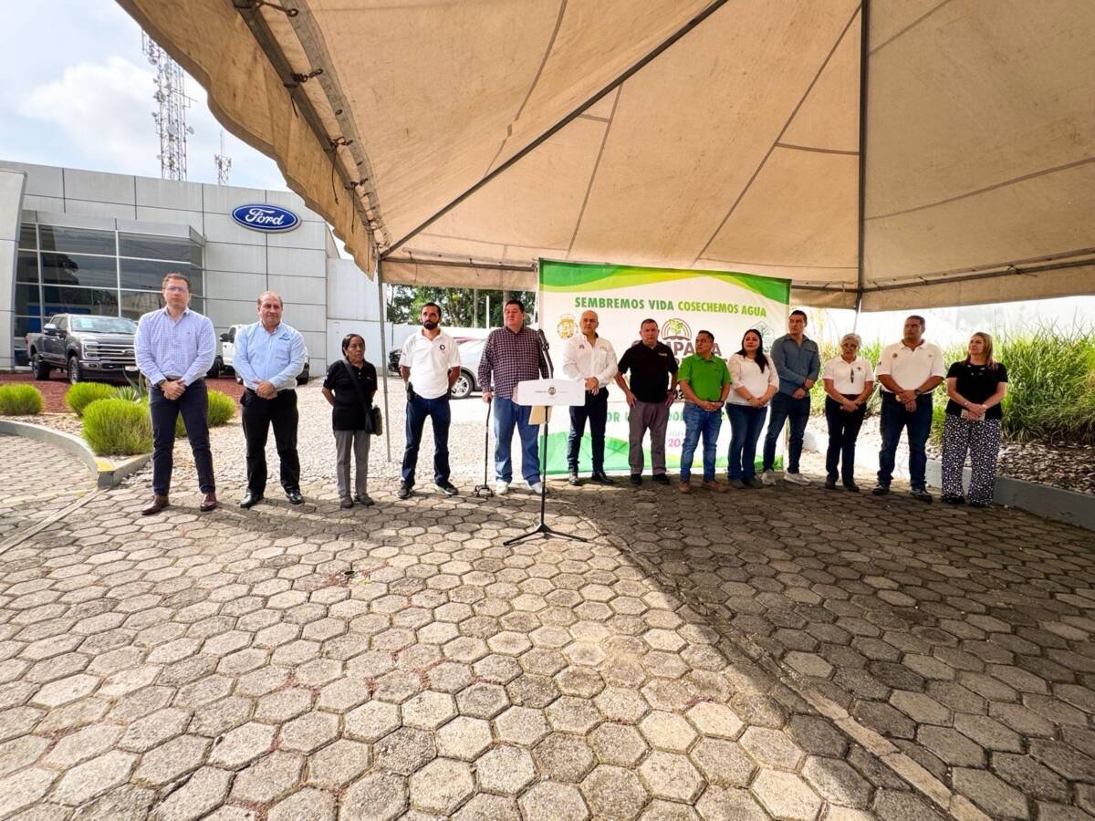 El acto protocolario encabezado por la síndica única, Vania López González acompañada del Regidor quinto Jonathan Francisco Rosas Blanco, se llevó a cabo en el estacionamiento de la empresa Ford, donde el gerente general, Leonardo Valdez Díaz, dio la bienvenida a las autoridades presentes para dar inicio al festejo del día del árbol.