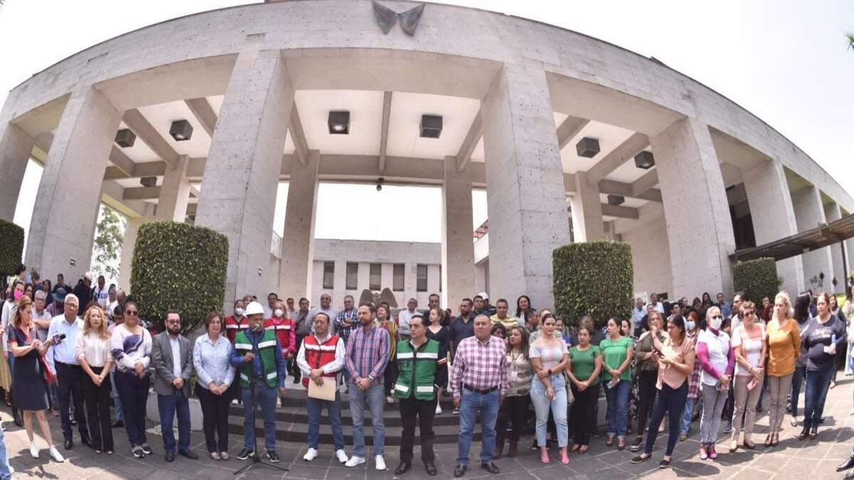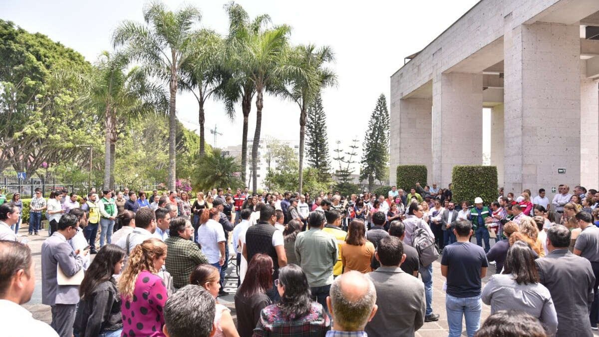 A las 11:00 horas de este 19 de abril y al sonar la alerta sísmica, brigadistas de protección civil del Congreso local evacuaron las áreas de oficinas y espacios cerrados del Palacio Legislativo y condujeron a visitantes, autoridades y plantilla laboral a los puntos de reuniones señalados en la explanada de actos cívicos.