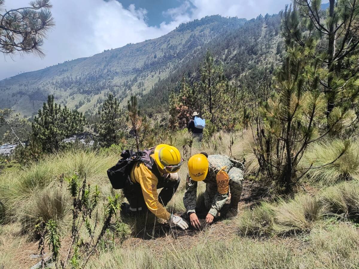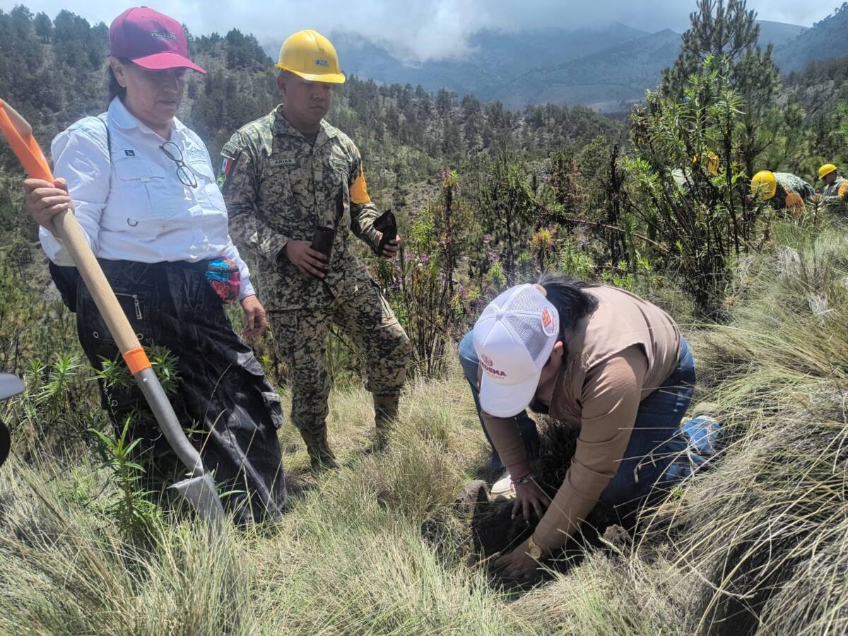Orizaba, Ver.- Elementos de la Secretaría de Defensa Nacional y la asociación civil Salvemos el Pico realizaron en días pasados trabajos de reforestación en las faldas del Pico de Orizaba logrando sembrar alrededor de 1,500 arbolitos de pino.