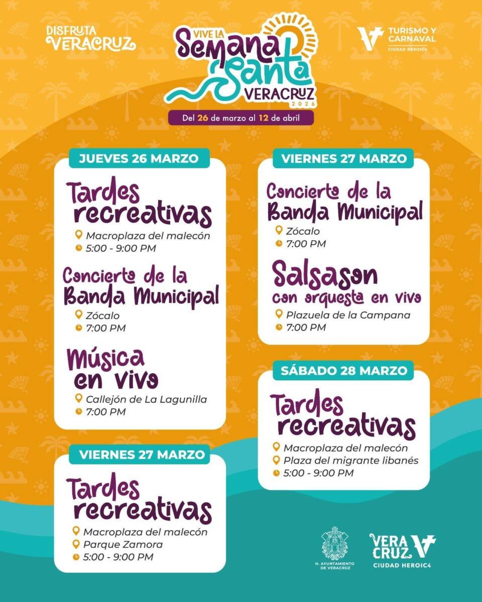 A punto de iniciar la temporada vacacional de Semana Santa, la ciudad de Veracruz está lista para recibir a locales y turistas con actividades culturales, gastronómicas e históricas, en espacios públicos y playas en condiciones óptimas. Del 26 de marzo al 12 de abril se desplegará una programación diaria diseñada para ofrecer experiencias seguras y memorables.