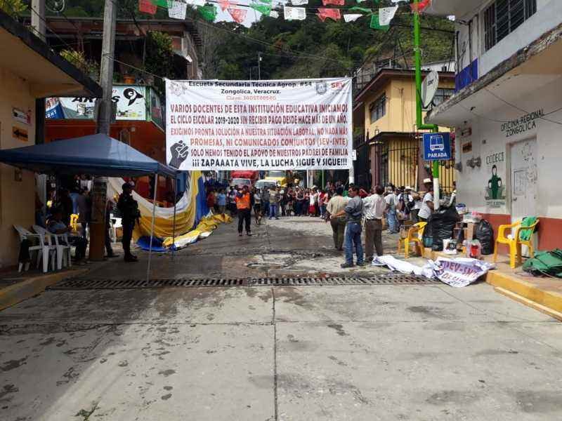 Zongolica, Ver.- Los funcionarios de la Secretaria de Educación de Veracruz (SEV) que llegaron hasta el bloqueo que mantienen padres de familia de la Escuela Secundaria Técnica 54, en la carretera Zongolica-Orizaba, ya cumplieron más de 20 horas retenidos por los manifestantes.