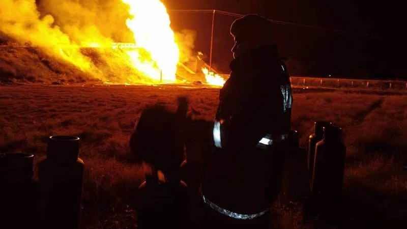 Pese a que cerraron las válvulas de paso de cada extremo del ducto para dejar en medio el combustible, este no ha terminado de consumirse y al parecer costará mucho tiempo que por si solo se apague.