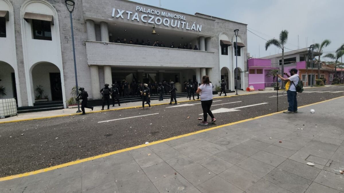 Ixtaczoquitlán, Ver.- Habitantes de Ixtaczoquitlán que mantenían tomado el Palacio Municipal desde el pasado 29 de abril, fueron desalojados la mañana de este miércoles por parte de elementos de la Fuerza Pública encabezados por el alcalde Nahum Álvarez Pellico.