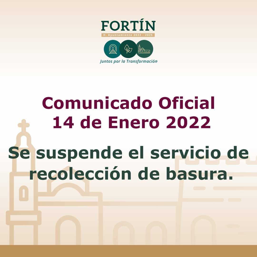 Ante el cierre del basurero regional de Cuitláhuac, nos vemos en la necesidad de suspender el servicio de recolección durante los siguientes días: